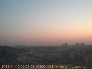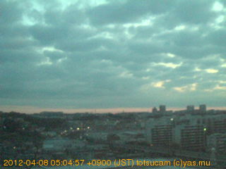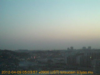 横浜市戸塚駅周辺から 東戸塚方面(北北東)を望む展望カメラの映像です。 左は現在の映像です。 下に並んでいるのは、 7日間に亘る日の出どき、昼間、夕暮れどきの写真(サムネイル)です。 それぞれ、日の出15分前、南中時、日没20分後の写真となっています。 各写真の下にはmpeg形式の動画へのリンクがあります。 それぞれ、日の出、南中、日没の前後1時間の画像です。 右欄にはその日24時間の動画へのリンクがあります。 この7日間以外は日付が一覧表示されています。 日付部分をクリックすると、 その日付から7日分が展開されて表示されます。