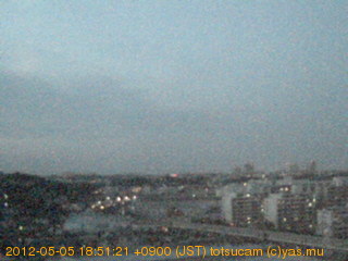 横浜市戸塚駅周辺から 東戸塚方面(北北東)を望む展望カメラの映像です。 左は現在の映像です。 下に並んでいるのは、 7日間に亘る日の出どき、昼間、夕暮れどきの写真(サムネイル)です。 それぞれ、日の出15分前、南中時、日没20分後の写真となっています。 各写真の下にはmpeg形式の動画へのリンクがあります。 それぞれ、日の出、南中、日没の前後1時間の画像です。 右欄にはその日24時間の動画へのリンクがあります。 この7日間以外は日付が一覧表示されています。 日付部分をクリックすると、 その日付から7日分が展開されて表示されます。