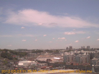 適度に曇った日の雲の動き (例: 2005-10-24) がとても楽しめます。 正面を横切っている高架は横須賀線下りです。 その下に横須賀線上り、東海道線、同貨物線が走っていますが、 高架に隠れていてよく見えません。 夜間は特に中央左寄りの車の動きがよく見えます。