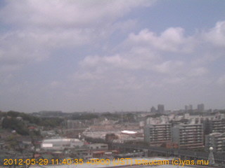 適度に曇った日の雲の動き (例: 2005-10-24) がとても楽しめます。 正面を横切っている高架は横須賀線下りです。 その下に横須賀線上り、東海道線、同貨物線が走っていますが、 高架に隠れていてよく見えません。 夜間は特に中央左寄りの車の動きがよく見えます。