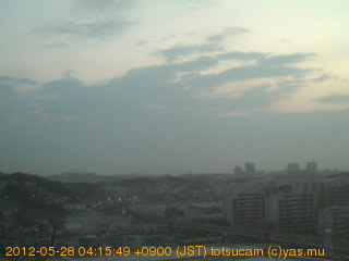 横浜市戸塚駅周辺から 東戸塚方面(北北東)を望む展望カメラの映像です。 左は現在の映像です。 下に並んでいるのは、 7日間に亘る日の出どき、昼間、夕暮れどきの写真(サムネイル)です。 それぞれ、日の出15分前、南中時、日没20分後の写真となっています。 各写真の下にはmpeg形式の動画へのリンクがあります。 それぞれ、日の出、南中、日没の前後1時間の画像です。 右欄にはその日24時間の動画へのリンクがあります。 この7日間以外は日付が一覧表示されています。 日付部分をクリックすると、 その日付から7日分が展開されて表示されます。