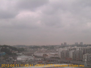適度に曇った日の雲の動き (例: 2005-10-24) がとても楽しめます。 正面を横切っている高架は横須賀線下りです。 その下に横須賀線上り、東海道線、同貨物線が走っていますが、 高架に隠れていてよく見えません。 夜間は特に中央左寄りの車の動きがよく見えます。