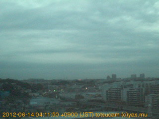 横浜市戸塚駅周辺から 東戸塚方面(北北東)を望む展望カメラの映像です。 左は現在の映像です。 下に並んでいるのは、 7日間に亘る日の出どき、昼間、夕暮れどきの写真(サムネイル)です。 それぞれ、日の出15分前、南中時、日没20分後の写真となっています。 各写真の下にはmpeg形式の動画へのリンクがあります。 それぞれ、日の出、南中、日没の前後1時間の画像です。 右欄にはその日24時間の動画へのリンクがあります。 この7日間以外は日付が一覧表示されています。 日付部分をクリックすると、 その日付から7日分が展開されて表示されます。