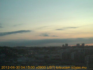横浜市戸塚駅周辺から 東戸塚方面(北北東)を望む展望カメラの映像です。 左は現在の映像です。 下に並んでいるのは、 7日間に亘る日の出どき、昼間、夕暮れどきの写真(サムネイル)です。 それぞれ、日の出15分前、南中時、日没20分後の写真となっています。 各写真の下にはmpeg形式の動画へのリンクがあります。 それぞれ、日の出、南中、日没の前後1時間の画像です。 右欄にはその日24時間の動画へのリンクがあります。 この7日間以外は日付が一覧表示されています。 日付部分をクリックすると、 その日付から7日分が展開されて表示されます。