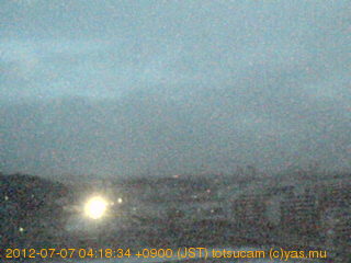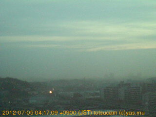 横浜市戸塚駅周辺から 東戸塚方面(北北東)を望む展望カメラの映像です。 左は現在の映像です。 下に並んでいるのは、 7日間に亘る日の出どき、昼間、夕暮れどきの写真(サムネイル)です。 それぞれ、日の出15分前、南中時、日没20分後の写真となっています。 各写真の下にはmpeg形式の動画へのリンクがあります。 それぞれ、日の出、南中、日没の前後1時間の画像です。 右欄にはその日24時間の動画へのリンクがあります。 この7日間以外は日付が一覧表示されています。 日付部分をクリックすると、 その日付から7日分が展開されて表示されます。