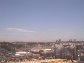 適度に曇った日の雲の動き (例: 2005-10-24) がとても楽しめます。 正面を横切っている高架は横須賀線下りです。 その下に横須賀線上り、東海道線、同貨物線が走っていますが、 高架に隠れていてよく見えません。 夜間は特に中央左寄りの車の動きがよく見えます。