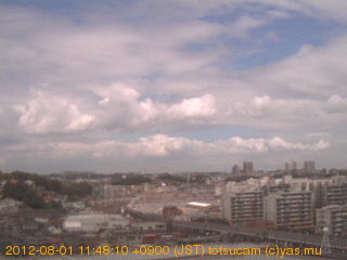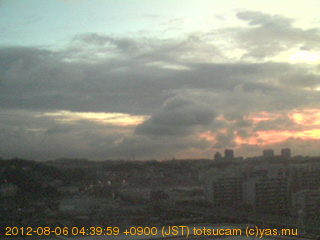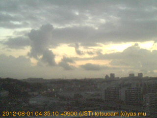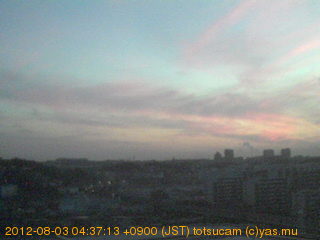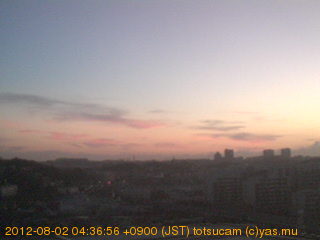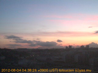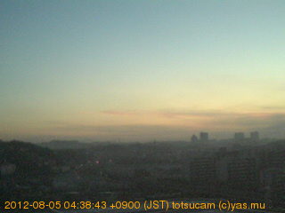 横浜市戸塚駅周辺から 東戸塚方面(北北東)を望む展望カメラの映像です。 左は現在の映像です。 下に並んでいるのは、 7日間に亘る日の出どき、昼間、夕暮れどきの写真(サムネイル)です。 それぞれ、日の出15分前、南中時、日没20分後の写真となっています。 各写真の下にはmpeg形式の動画へのリンクがあります。 それぞれ、日の出、南中、日没の前後1時間の画像です。 右欄にはその日24時間の動画へのリンクがあります。 この7日間以外は日付が一覧表示されています。 日付部分をクリックすると、 その日付から7日分が展開されて表示されます。