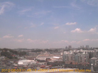 適度に曇った日の雲の動き (例: 2005-10-24) がとても楽しめます。 正面を横切っている高架は横須賀線下りです。 その下に横須賀線上り、東海道線、同貨物線が走っていますが、 高架に隠れていてよく見えません。 夜間は特に中央左寄りの車の動きがよく見えます。