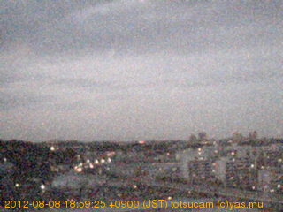 横浜市戸塚駅周辺から 東戸塚方面(北北東)を望む展望カメラの映像です。 左は現在の映像です。 下に並んでいるのは、 7日間に亘る日の出どき、昼間、夕暮れどきの写真(サムネイル)です。 それぞれ、日の出15分前、南中時、日没20分後の写真となっています。 各写真の下にはmpeg形式の動画へのリンクがあります。 それぞれ、日の出、南中、日没の前後1時間の画像です。 右欄にはその日24時間の動画へのリンクがあります。 この7日間以外は日付が一覧表示されています。 日付部分をクリックすると、 その日付から7日分が展開されて表示されます。