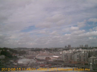 適度に曇った日の雲の動き (例: 2005-10-24) がとても楽しめます。 正面を横切っている高架は横須賀線下りです。 その下に横須賀線上り、東海道線、同貨物線が走っていますが、 高架に隠れていてよく見えません。 夜間は特に中央左寄りの車の動きがよく見えます。