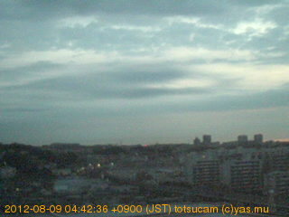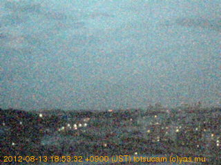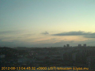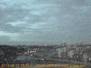 横浜市戸塚駅周辺から 東戸塚方面(北北東)を望む展望カメラの映像です。 左は現在の映像です。 下に並んでいるのは、 7日間に亘る日の出どき、昼間、夕暮れどきの写真(サムネイル)です。 それぞれ、日の出15分前、南中時、日没20分後の写真となっています。 各写真の下にはmpeg形式の動画へのリンクがあります。 それぞれ、日の出、南中、日没の前後1時間の画像です。 右欄にはその日24時間の動画へのリンクがあります。 この7日間以外は日付が一覧表示されています。 日付部分をクリックすると、 その日付から7日分が展開されて表示されます。