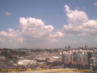 適度に曇った日の雲の動き (例: 2005-10-24) がとても楽しめます。 正面を横切っている高架は横須賀線下りです。 その下に横須賀線上り、東海道線、同貨物線が走っていますが、 高架に隠れていてよく見えません。 夜間は特に中央左寄りの車の動きがよく見えます。