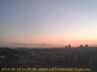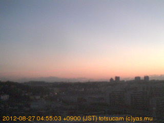 横浜市戸塚駅周辺から 東戸塚方面(北北東)を望む展望カメラの映像です。 左は現在の映像です。 下に並んでいるのは、 7日間に亘る日の出どき、昼間、夕暮れどきの写真(サムネイル)です。 それぞれ、日の出15分前、南中時、日没20分後の写真となっています。 各写真の下にはmpeg形式の動画へのリンクがあります。 それぞれ、日の出、南中、日没の前後1時間の画像です。 右欄にはその日24時間の動画へのリンクがあります。 この7日間以外は日付が一覧表示されています。 日付部分をクリックすると、 その日付から7日分が展開されて表示されます。