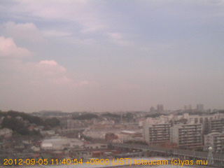 適度に曇った日の雲の動き (例: 2005-10-24) がとても楽しめます。 正面を横切っている高架は横須賀線下りです。 その下に横須賀線上り、東海道線、同貨物線が走っていますが、 高架に隠れていてよく見えません。 夜間は特に中央左寄りの車の動きがよく見えます。