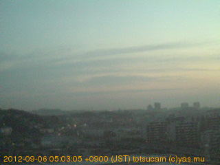 横浜市戸塚駅周辺から 東戸塚方面(北北東)を望む展望カメラの映像です。 左は現在の映像です。 下に並んでいるのは、 7日間に亘る日の出どき、昼間、夕暮れどきの写真(サムネイル)です。 それぞれ、日の出15分前、南中時、日没20分後の写真となっています。 各写真の下にはmpeg形式の動画へのリンクがあります。 それぞれ、日の出、南中、日没の前後1時間の画像です。 右欄にはその日24時間の動画へのリンクがあります。 この7日間以外は日付が一覧表示されています。 日付部分をクリックすると、 その日付から7日分が展開されて表示されます。