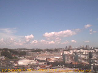 適度に曇った日の雲の動き (例: 2005-10-24) がとても楽しめます。 正面を横切っている高架は横須賀線下りです。 その下に横須賀線上り、東海道線、同貨物線が走っていますが、 高架に隠れていてよく見えません。 夜間は特に中央左寄りの車の動きがよく見えます。