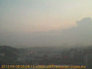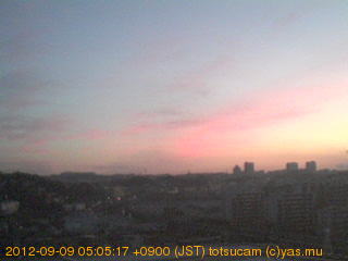 横浜市戸塚駅周辺から 東戸塚方面(北北東)を望む展望カメラの映像です。 左は現在の映像です。 下に並んでいるのは、 7日間に亘る日の出どき、昼間、夕暮れどきの写真(サムネイル)です。 それぞれ、日の出15分前、南中時、日没20分後の写真となっています。 各写真の下にはmpeg形式の動画へのリンクがあります。 それぞれ、日の出、南中、日没の前後1時間の画像です。 右欄にはその日24時間の動画へのリンクがあります。 この7日間以外は日付が一覧表示されています。 日付部分をクリックすると、 その日付から7日分が展開されて表示されます。