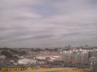 適度に曇った日の雲の動き (例: 2005-10-24) がとても楽しめます。 正面を横切っている高架は横須賀線下りです。 その下に横須賀線上り、東海道線、同貨物線が走っていますが、 高架に隠れていてよく見えません。 夜間は特に中央左寄りの車の動きがよく見えます。