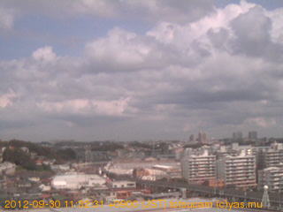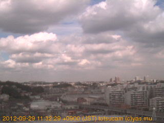適度に曇った日の雲の動き (例: 2005-10-24) がとても楽しめます。 正面を横切っている高架は横須賀線下りです。 その下に横須賀線上り、東海道線、同貨物線が走っていますが、 高架に隠れていてよく見えません。 夜間は特に中央左寄りの車の動きがよく見えます。