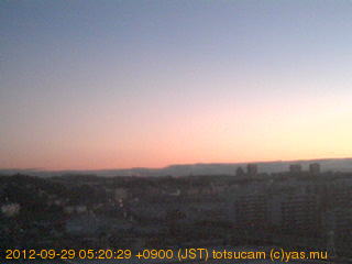 横浜市戸塚駅周辺から 東戸塚方面(北北東)を望む展望カメラの映像です。 左は現在の映像です。 下に並んでいるのは、 7日間に亘る日の出どき、昼間、夕暮れどきの写真(サムネイル)です。 それぞれ、日の出15分前、南中時、日没20分後の写真となっています。 各写真の下にはmpeg形式の動画へのリンクがあります。 それぞれ、日の出、南中、日没の前後1時間の画像です。 右欄にはその日24時間の動画へのリンクがあります。 この7日間以外は日付が一覧表示されています。 日付部分をクリックすると、 その日付から7日分が展開されて表示されます。