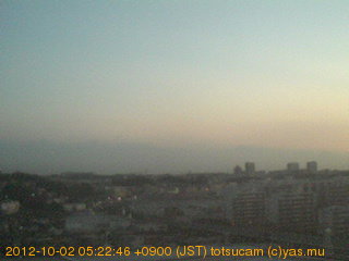 横浜市戸塚駅周辺から 東戸塚方面(北北東)を望む展望カメラの映像です。 左は現在の映像です。 下に並んでいるのは、 7日間に亘る日の出どき、昼間、夕暮れどきの写真(サムネイル)です。 それぞれ、日の出15分前、南中時、日没20分後の写真となっています。 各写真の下にはmpeg形式の動画へのリンクがあります。 それぞれ、日の出、南中、日没の前後1時間の画像です。 右欄にはその日24時間の動画へのリンクがあります。 この7日間以外は日付が一覧表示されています。 日付部分をクリックすると、 その日付から7日分が展開されて表示されます。