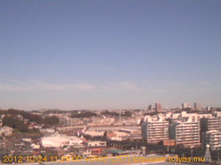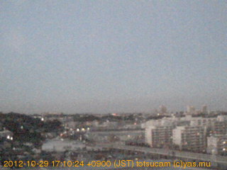 適度に曇った日の雲の動き (例: 2005-10-24) がとても楽しめます。 正面を横切っている高架は横須賀線下りです。 その下に横須賀線上り、東海道線、同貨物線が走っていますが、 高架に隠れていてよく見えません。 夜間は特に中央左寄りの車の動きがよく見えます。