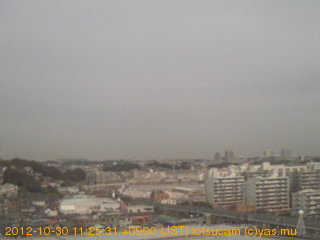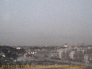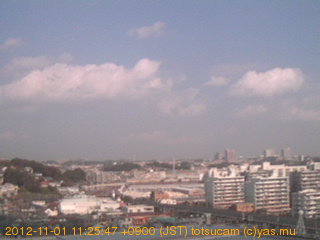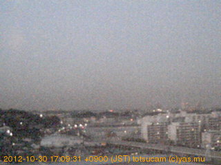 適度に曇った日の雲の動き (例: 2005-10-24) がとても楽しめます。 正面を横切っている高架は横須賀線下りです。 その下に横須賀線上り、東海道線、同貨物線が走っていますが、 高架に隠れていてよく見えません。 夜間は特に中央左寄りの車の動きがよく見えます。