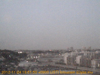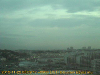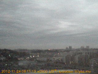 横浜市戸塚駅周辺から 東戸塚方面(北北東)を望む展望カメラの映像です。 左は現在の映像です。 下に並んでいるのは、 7日間に亘る日の出どき、昼間、夕暮れどきの写真(サムネイル)です。 それぞれ、日の出15分前、南中時、日没20分後の写真となっています。 各写真の下にはmpeg形式の動画へのリンクがあります。 それぞれ、日の出、南中、日没の前後1時間の画像です。 右欄にはその日24時間の動画へのリンクがあります。 この7日間以外は日付が一覧表示されています。 日付部分をクリックすると、 その日付から7日分が展開されて表示されます。
