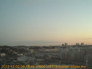 横浜市戸塚駅周辺から 東戸塚方面(北北東)を望む展望カメラの映像です。 左は現在の映像です。 下に並んでいるのは、 7日間に亘る日の出どき、昼間、夕暮れどきの写真(サムネイル)です。 それぞれ、日の出15分前、南中時、日没20分後の写真となっています。 各写真の下にはmpeg形式の動画へのリンクがあります。 それぞれ、日の出、南中、日没の前後1時間の画像です。 右欄にはその日24時間の動画へのリンクがあります。 この7日間以外は日付が一覧表示されています。 日付部分をクリックすると、 その日付から7日分が展開されて表示されます。