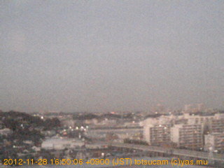 適度に曇った日の雲の動き (例: 2005-10-24) がとても楽しめます。 正面を横切っている高架は横須賀線下りです。 その下に横須賀線上り、東海道線、同貨物線が走っていますが、 高架に隠れていてよく見えません。 夜間は特に中央左寄りの車の動きがよく見えます。
