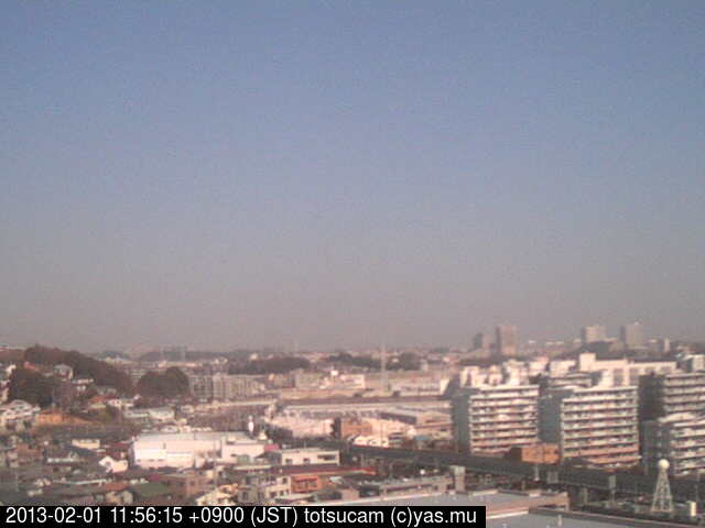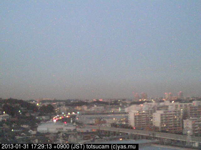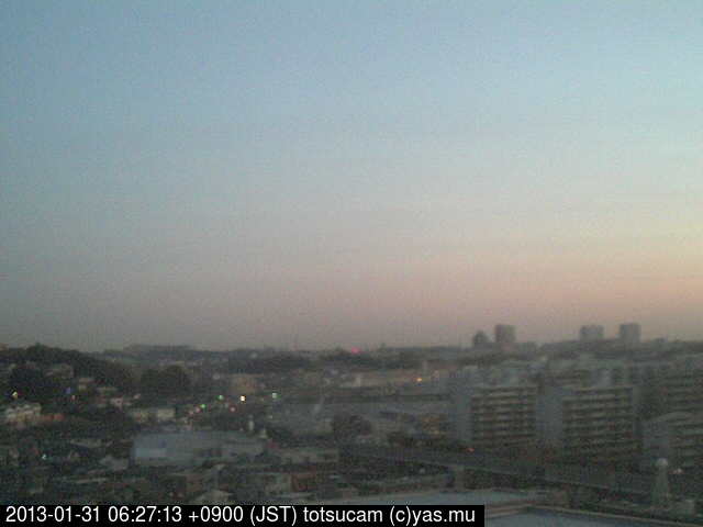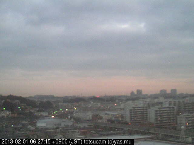 横浜市戸塚駅周辺から 東戸塚方面(北北東)を望む展望カメラの映像です。 左は現在の映像です。 下に並んでいるのは、 7日間に亘る日の出どき、昼間、夕暮れどきの写真(サムネイル)です。 それぞれ、日の出15分前、南中時、日没20分後の写真となっています。 各写真の下にはmpeg形式の動画へのリンクがあります。 それぞれ、日の出、南中、日没の前後1時間の画像です。 右欄にはその日24時間の動画へのリンクがあります。 この7日間以外は日付が一覧表示されています。 日付部分をクリックすると、 その日付から7日分が展開されて表示されます。