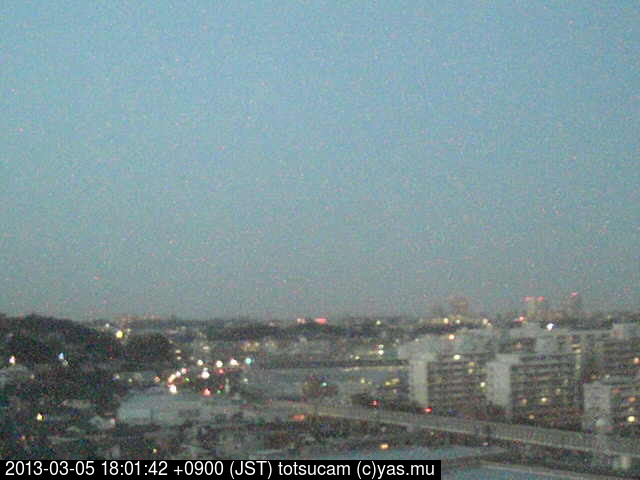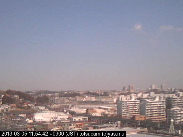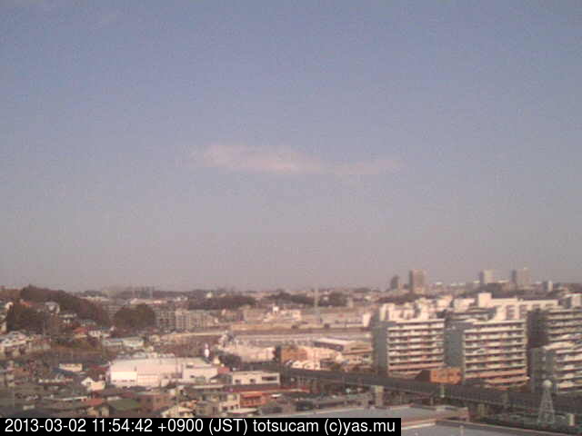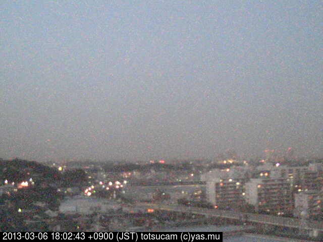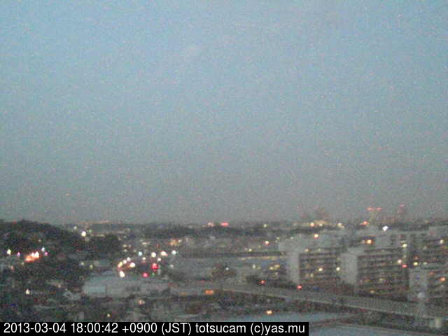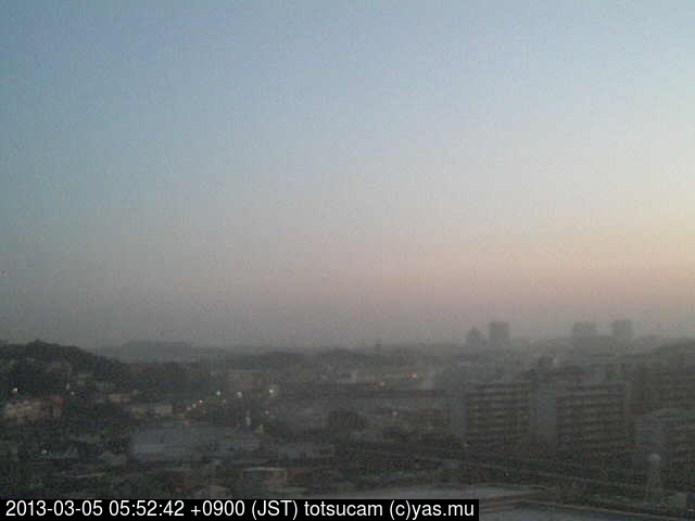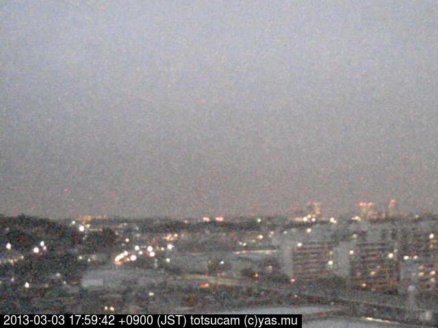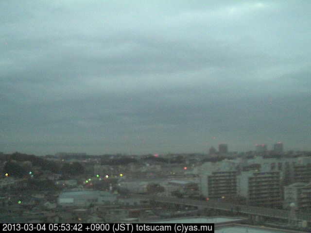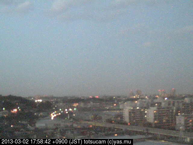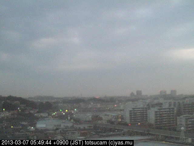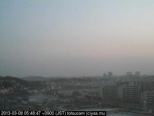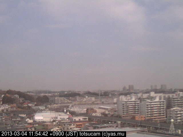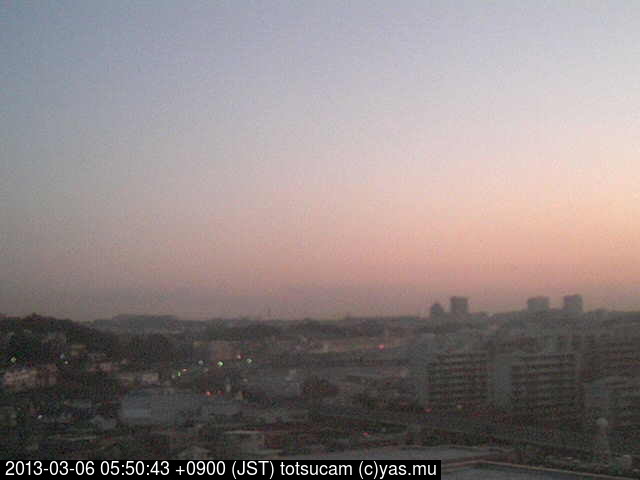 横浜市戸塚駅周辺から 東戸塚方面(北北東)を望む展望カメラの映像です。 左は現在の映像です。 下に並んでいるのは、 7日間に亘る日の出どき、昼間、夕暮れどきの写真(サムネイル)です。 それぞれ、日の出15分前、南中時、日没20分後の写真となっています。 各写真の下にはmpeg形式の動画へのリンクがあります。 それぞれ、日の出、南中、日没の前後1時間の画像です。 右欄にはその日24時間の動画へのリンクがあります。 この7日間以外は日付が一覧表示されています。 日付部分をクリックすると、 その日付から7日分が展開されて表示されます。