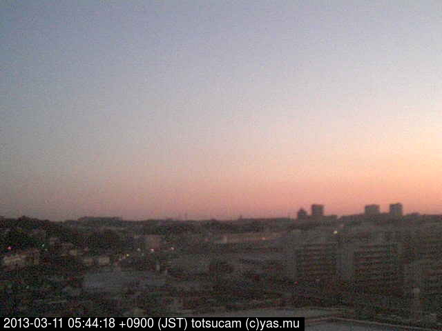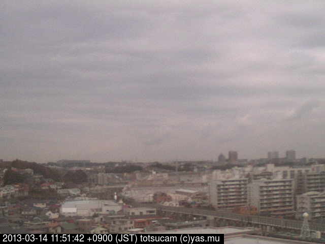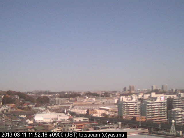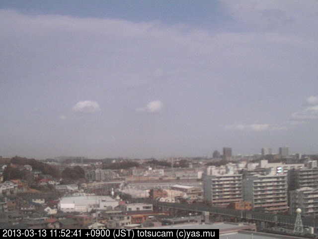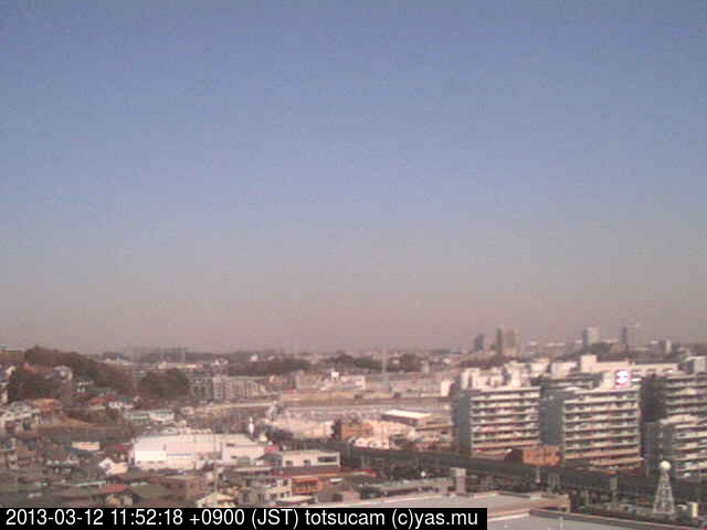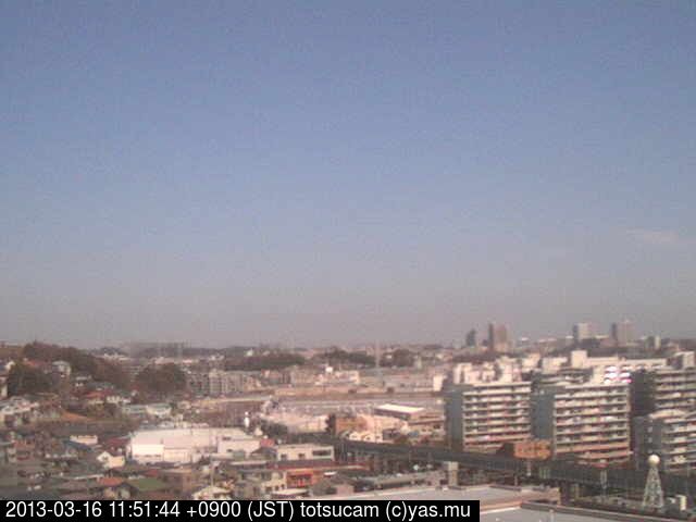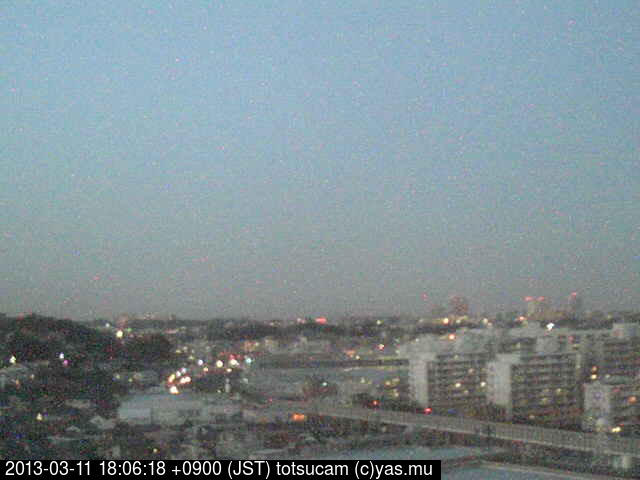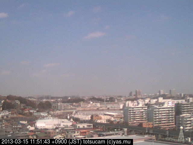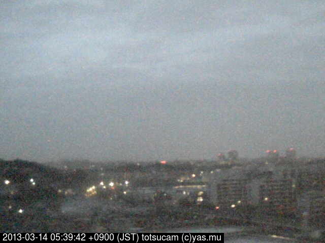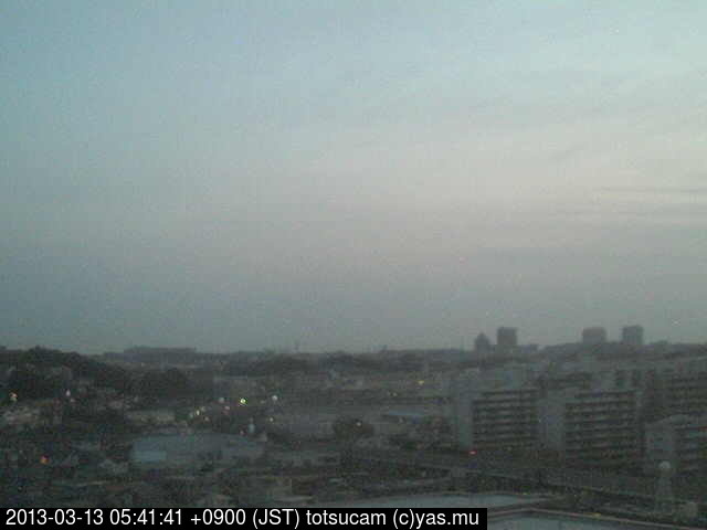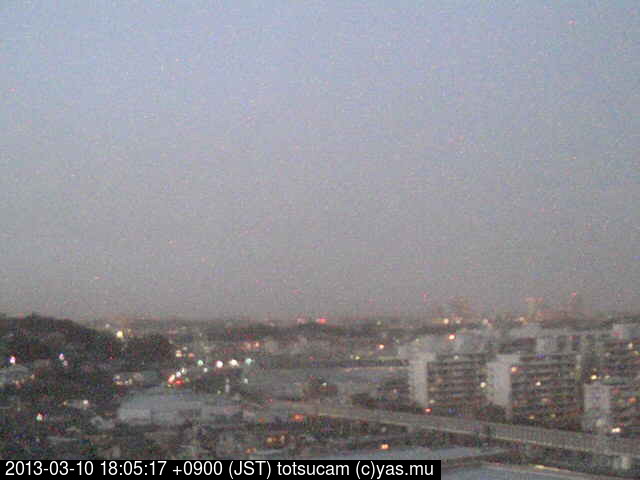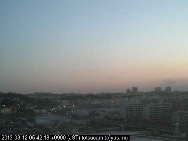 横浜市戸塚駅周辺から 東戸塚方面(北北東)を望む展望カメラの映像です。 左は現在の映像です。 下に並んでいるのは、 7日間に亘る日の出どき、昼間、夕暮れどきの写真(サムネイル)です。 それぞれ、日の出15分前、南中時、日没20分後の写真となっています。 各写真の下にはmpeg形式の動画へのリンクがあります。 それぞれ、日の出、南中、日没の前後1時間の画像です。 右欄にはその日24時間の動画へのリンクがあります。 この7日間以外は日付が一覧表示されています。 日付部分をクリックすると、 その日付から7日分が展開されて表示されます。