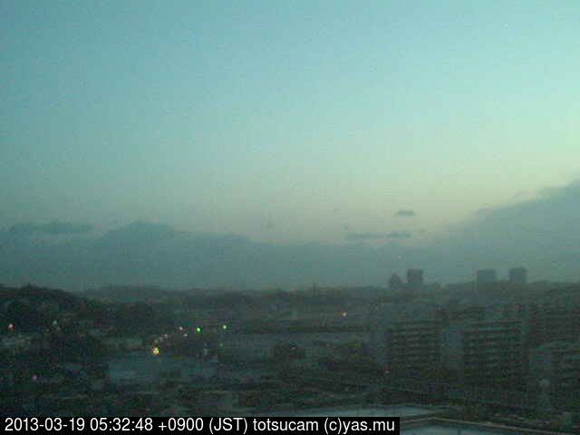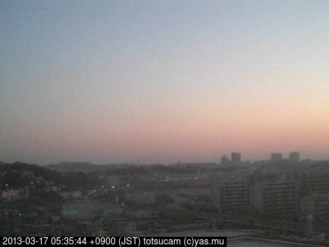 横浜市戸塚駅周辺から 東戸塚方面(北北東)を望む展望カメラの映像です。 左は現在の映像です。 下に並んでいるのは、 7日間に亘る日の出どき、昼間、夕暮れどきの写真(サムネイル)です。 それぞれ、日の出15分前、南中時、日没20分後の写真となっています。 各写真の下にはmpeg形式の動画へのリンクがあります。 それぞれ、日の出、南中、日没の前後1時間の画像です。 右欄にはその日24時間の動画へのリンクがあります。 この7日間以外は日付が一覧表示されています。 日付部分をクリックすると、 その日付から7日分が展開されて表示されます。