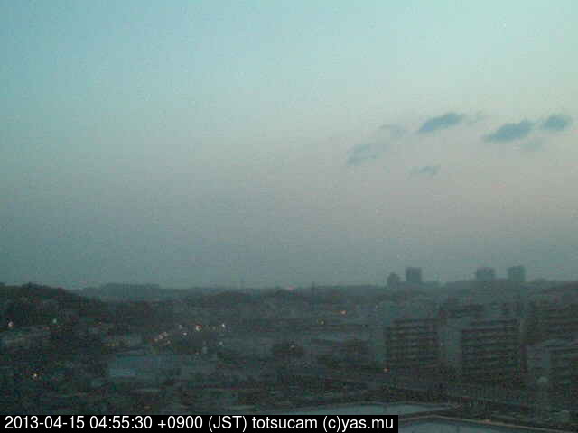 横浜市戸塚駅周辺から 東戸塚方面(北北東)を望む展望カメラの映像です。 左は現在の映像です。 下に並んでいるのは、 7日間に亘る日の出どき、昼間、夕暮れどきの写真(サムネイル)です。 それぞれ、日の出15分前、南中時、日没20分後の写真となっています。 各写真の下にはmpeg形式の動画へのリンクがあります。 それぞれ、日の出、南中、日没の前後1時間の画像です。 右欄にはその日24時間の動画へのリンクがあります。 この7日間以外は日付が一覧表示されています。 日付部分をクリックすると、 その日付から7日分が展開されて表示されます。
