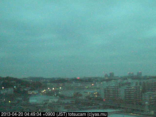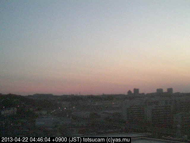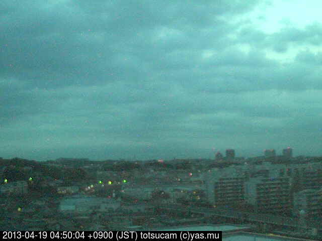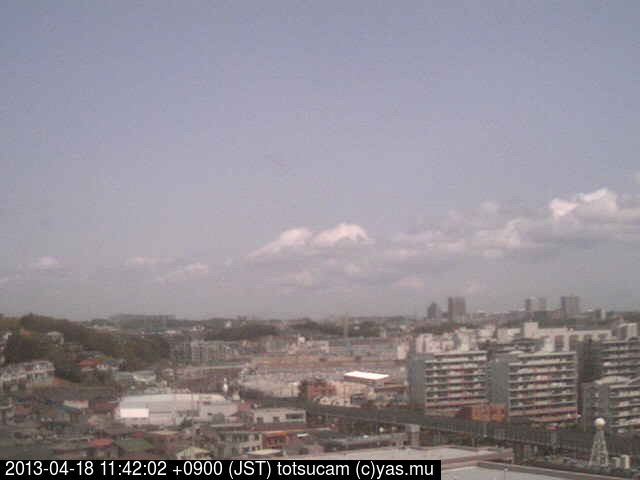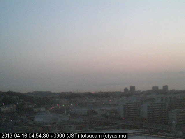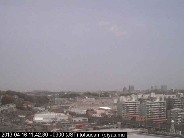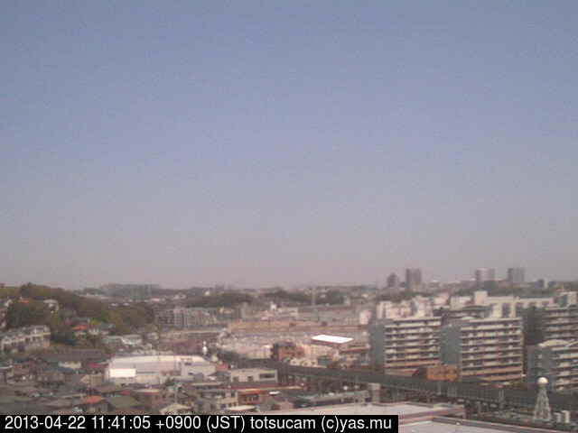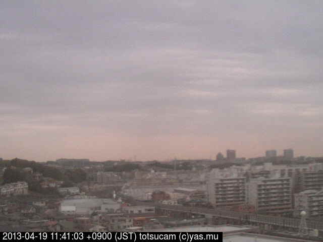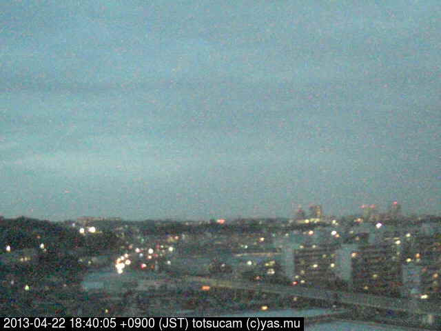 横浜市戸塚駅周辺から 東戸塚方面(北北東)を望む展望カメラの映像です。 左は現在の映像です。 下に並んでいるのは、 7日間に亘る日の出どき、昼間、夕暮れどきの写真(サムネイル)です。 それぞれ、日の出15分前、南中時、日没20分後の写真となっています。 各写真の下にはmpeg形式の動画へのリンクがあります。 それぞれ、日の出、南中、日没の前後1時間の画像です。 右欄にはその日24時間の動画へのリンクがあります。 この7日間以外は日付が一覧表示されています。 日付部分をクリックすると、 その日付から7日分が展開されて表示されます。