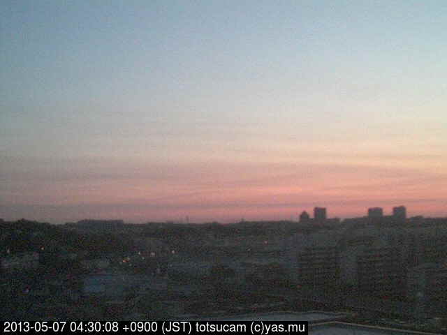 横浜市戸塚駅周辺から 東戸塚方面(北北東)を望む展望カメラの映像です。 左は現在の映像です。 下に並んでいるのは、 7日間に亘る日の出どき、昼間、夕暮れどきの写真(サムネイル)です。 それぞれ、日の出15分前、南中時、日没20分後の写真となっています。 各写真の下にはmpeg形式の動画へのリンクがあります。 それぞれ、日の出、南中、日没の前後1時間の画像です。 右欄にはその日24時間の動画へのリンクがあります。 この7日間以外は日付が一覧表示されています。 日付部分をクリックすると、 その日付から7日分が展開されて表示されます。