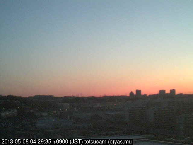 横浜市戸塚駅周辺から 東戸塚方面(北北東)を望む展望カメラの映像です。 左は現在の映像です。 下に並んでいるのは、 7日間に亘る日の出どき、昼間、夕暮れどきの写真(サムネイル)です。 それぞれ、日の出15分前、南中時、日没20分後の写真となっています。 各写真の下にはmpeg形式の動画へのリンクがあります。 それぞれ、日の出、南中、日没の前後1時間の画像です。 右欄にはその日24時間の動画へのリンクがあります。 この7日間以外は日付が一覧表示されています。 日付部分をクリックすると、 その日付から7日分が展開されて表示されます。