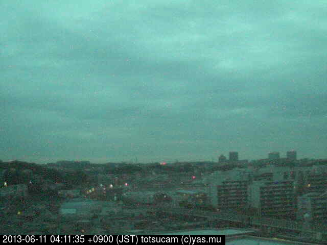 横浜市戸塚駅周辺から 東戸塚方面(北北東)を望む展望カメラの映像です。 左は現在の映像です。 下に並んでいるのは、 7日間に亘る日の出どき、昼間、夕暮れどきの写真(サムネイル)です。 それぞれ、日の出15分前、南中時、日没20分後の写真となっています。 各写真の下にはmpeg形式の動画へのリンクがあります。 それぞれ、日の出、南中、日没の前後1時間の画像です。 右欄にはその日24時間の動画へのリンクがあります。 この7日間以外は日付が一覧表示されています。 日付部分をクリックすると、 その日付から7日分が展開されて表示されます。