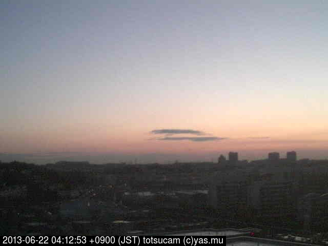 横浜市戸塚駅周辺から 東戸塚方面(北北東)を望む展望カメラの映像です。 左は現在の映像です。 下に並んでいるのは、 7日間に亘る日の出どき、昼間、夕暮れどきの写真(サムネイル)です。 それぞれ、日の出15分前、南中時、日没20分後の写真となっています。 各写真の下にはmpeg形式の動画へのリンクがあります。 それぞれ、日の出、南中、日没の前後1時間の画像です。 右欄にはその日24時間の動画へのリンクがあります。 この7日間以外は日付が一覧表示されています。 日付部分をクリックすると、 その日付から7日分が展開されて表示されます。