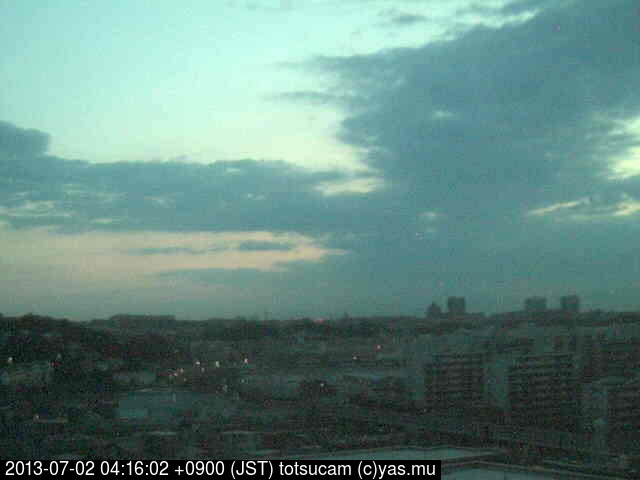 横浜市戸塚駅周辺から 東戸塚方面(北北東)を望む展望カメラの映像です。 左は現在の映像です。 下に並んでいるのは、 7日間に亘る日の出どき、昼間、夕暮れどきの写真(サムネイル)です。 それぞれ、日の出15分前、南中時、日没20分後の写真となっています。 各写真の下にはmpeg形式の動画へのリンクがあります。 それぞれ、日の出、南中、日没の前後1時間の画像です。 右欄にはその日24時間の動画へのリンクがあります。 この7日間以外は日付が一覧表示されています。 日付部分をクリックすると、 その日付から7日分が展開されて表示されます。