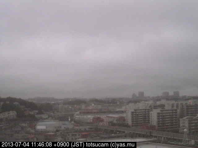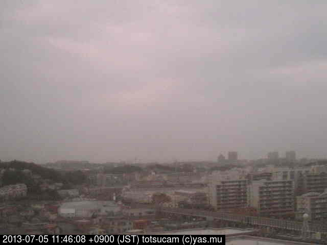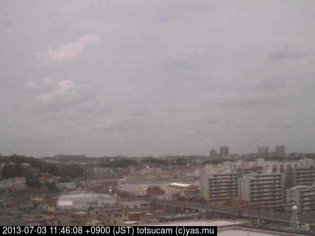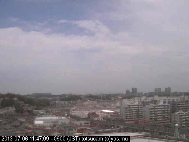 適度に曇った日の雲の動き (例: 2005-10-24) がとても楽しめます。 正面を横切っている高架は横須賀線下りです。 その下に横須賀線上り、東海道線、同貨物線が走っていますが、 高架に隠れていてよく見えません。 夜間は特に中央左寄りの車の動きがよく見えます。