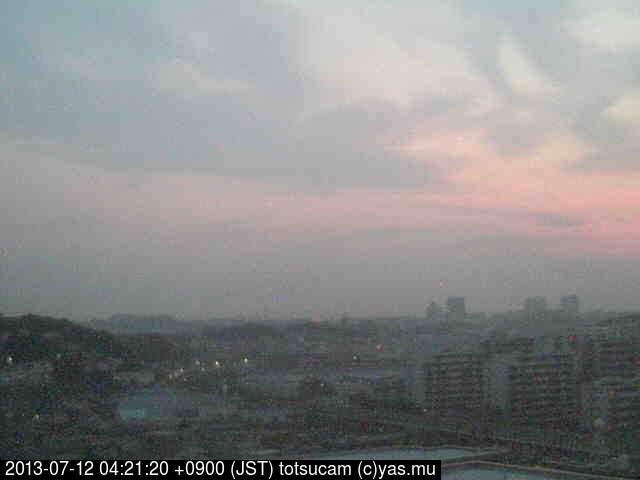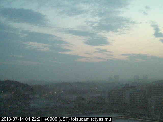 横浜市戸塚駅周辺から 東戸塚方面(北北東)を望む展望カメラの映像です。 左は現在の映像です。 下に並んでいるのは、 7日間に亘る日の出どき、昼間、夕暮れどきの写真(サムネイル)です。 それぞれ、日の出15分前、南中時、日没20分後の写真となっています。 各写真の下にはmpeg形式の動画へのリンクがあります。 それぞれ、日の出、南中、日没の前後1時間の画像です。 右欄にはその日24時間の動画へのリンクがあります。 この7日間以外は日付が一覧表示されています。 日付部分をクリックすると、 その日付から7日分が展開されて表示されます。