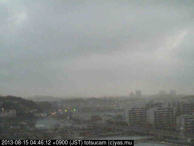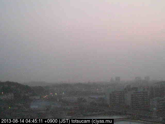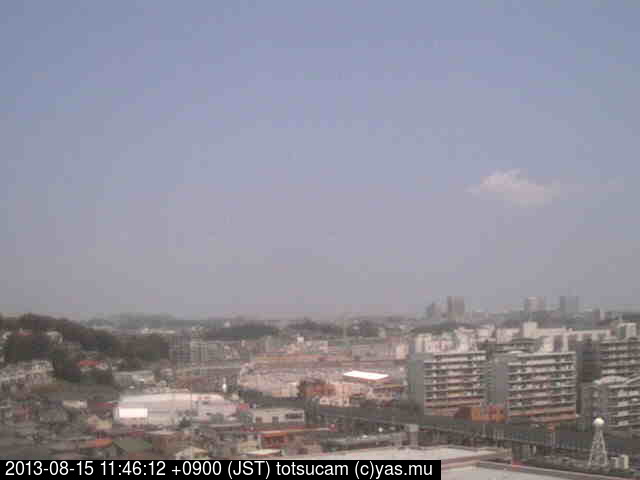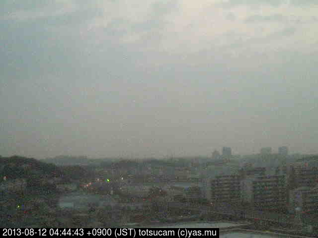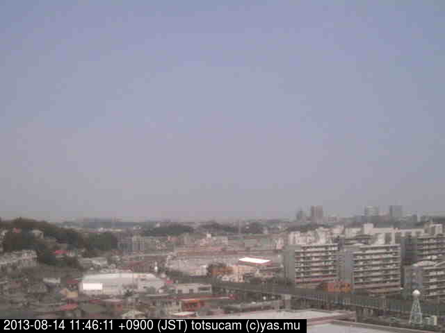 横浜市戸塚駅周辺から 東戸塚方面(北北東)を望む展望カメラの映像です。 左は現在の映像です。 下に並んでいるのは、 7日間に亘る日の出どき、昼間、夕暮れどきの写真(サムネイル)です。 それぞれ、日の出15分前、南中時、日没20分後の写真となっています。 各写真の下にはmpeg形式の動画へのリンクがあります。 それぞれ、日の出、南中、日没の前後1時間の画像です。 右欄にはその日24時間の動画へのリンクがあります。 この7日間以外は日付が一覧表示されています。 日付部分をクリックすると、 その日付から7日分が展開されて表示されます。