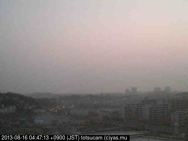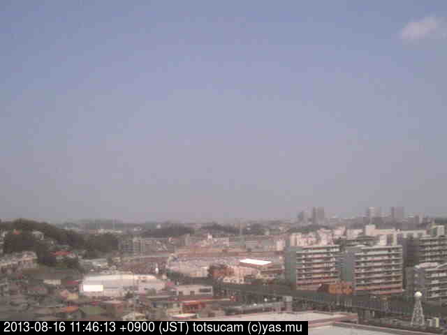 横浜市戸塚駅周辺から 東戸塚方面(北北東)を望む展望カメラの映像です。 左は現在の映像です。 下に並んでいるのは、 7日間に亘る日の出どき、昼間、夕暮れどきの写真(サムネイル)です。 それぞれ、日の出15分前、南中時、日没20分後の写真となっています。 各写真の下にはmpeg形式の動画へのリンクがあります。 それぞれ、日の出、南中、日没の前後1時間の画像です。 右欄にはその日24時間の動画へのリンクがあります。 この7日間以外は日付が一覧表示されています。 日付部分をクリックすると、 その日付から7日分が展開されて表示されます。
