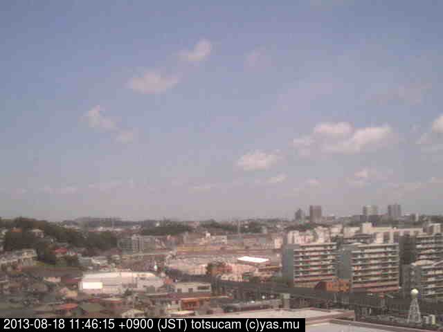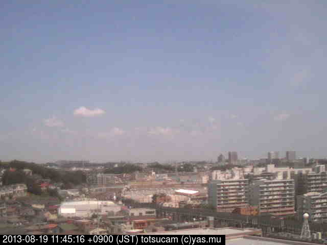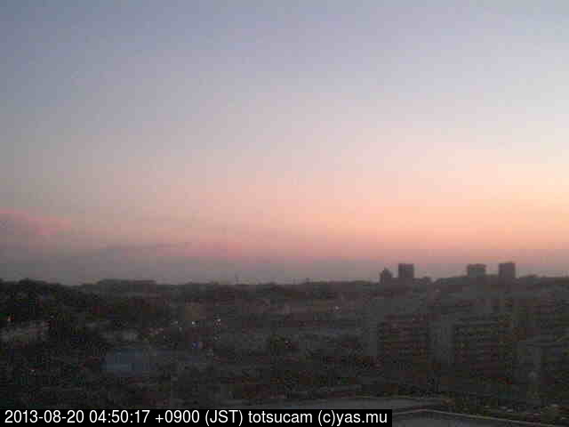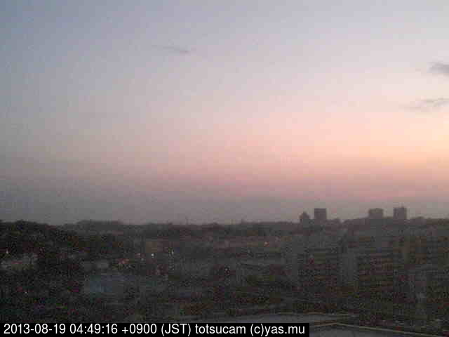 横浜市戸塚駅周辺から 東戸塚方面(北北東)を望む展望カメラの映像です。 左は現在の映像です。 下に並んでいるのは、 7日間に亘る日の出どき、昼間、夕暮れどきの写真(サムネイル)です。 それぞれ、日の出15分前、南中時、日没20分後の写真となっています。 各写真の下にはmpeg形式の動画へのリンクがあります。 それぞれ、日の出、南中、日没の前後1時間の画像です。 右欄にはその日24時間の動画へのリンクがあります。 この7日間以外は日付が一覧表示されています。 日付部分をクリックすると、 その日付から7日分が展開されて表示されます。