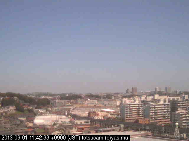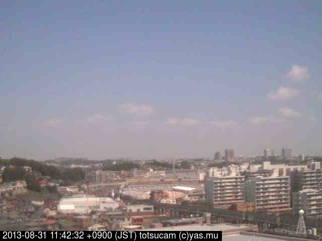 横浜市戸塚駅周辺から 東戸塚方面(北北東)を望む展望カメラの映像です。 左は現在の映像です。 下に並んでいるのは、 7日間に亘る日の出どき、昼間、夕暮れどきの写真(サムネイル)です。 それぞれ、日の出15分前、南中時、日没20分後の写真となっています。 各写真の下にはmpeg形式の動画へのリンクがあります。 それぞれ、日の出、南中、日没の前後1時間の画像です。 右欄にはその日24時間の動画へのリンクがあります。 この7日間以外は日付が一覧表示されています。 日付部分をクリックすると、 その日付から7日分が展開されて表示されます。