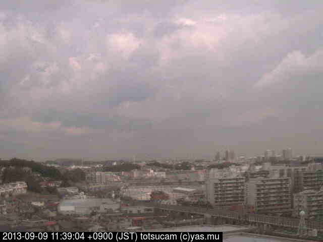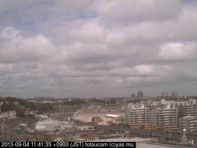 適度に曇った日の雲の動き (例: 2005-10-24) がとても楽しめます。 正面を横切っている高架は横須賀線下りです。 その下に横須賀線上り、東海道線、同貨物線が走っていますが、 高架に隠れていてよく見えません。 夜間は特に中央左寄りの車の動きがよく見えます。