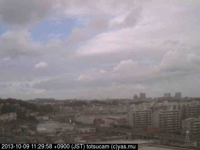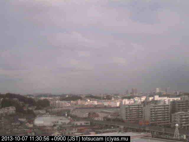 適度に曇った日の雲の動き (例: 2005-10-24) がとても楽しめます。 正面を横切っている高架は横須賀線下りです。 その下に横須賀線上り、東海道線、同貨物線が走っていますが、 高架に隠れていてよく見えません。 夜間は特に中央左寄りの車の動きがよく見えます。