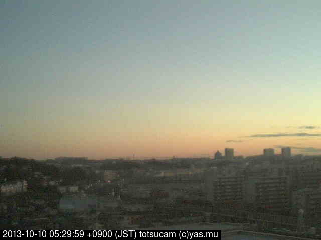 横浜市戸塚駅周辺から 東戸塚方面(北北東)を望む展望カメラの映像です。 左は現在の映像です。 下に並んでいるのは、 7日間に亘る日の出どき、昼間、夕暮れどきの写真(サムネイル)です。 それぞれ、日の出15分前、南中時、日没20分後の写真となっています。 各写真の下にはmpeg形式の動画へのリンクがあります。 それぞれ、日の出、南中、日没の前後1時間の画像です。 右欄にはその日24時間の動画へのリンクがあります。 この7日間以外は日付が一覧表示されています。 日付部分をクリックすると、 その日付から7日分が展開されて表示されます。